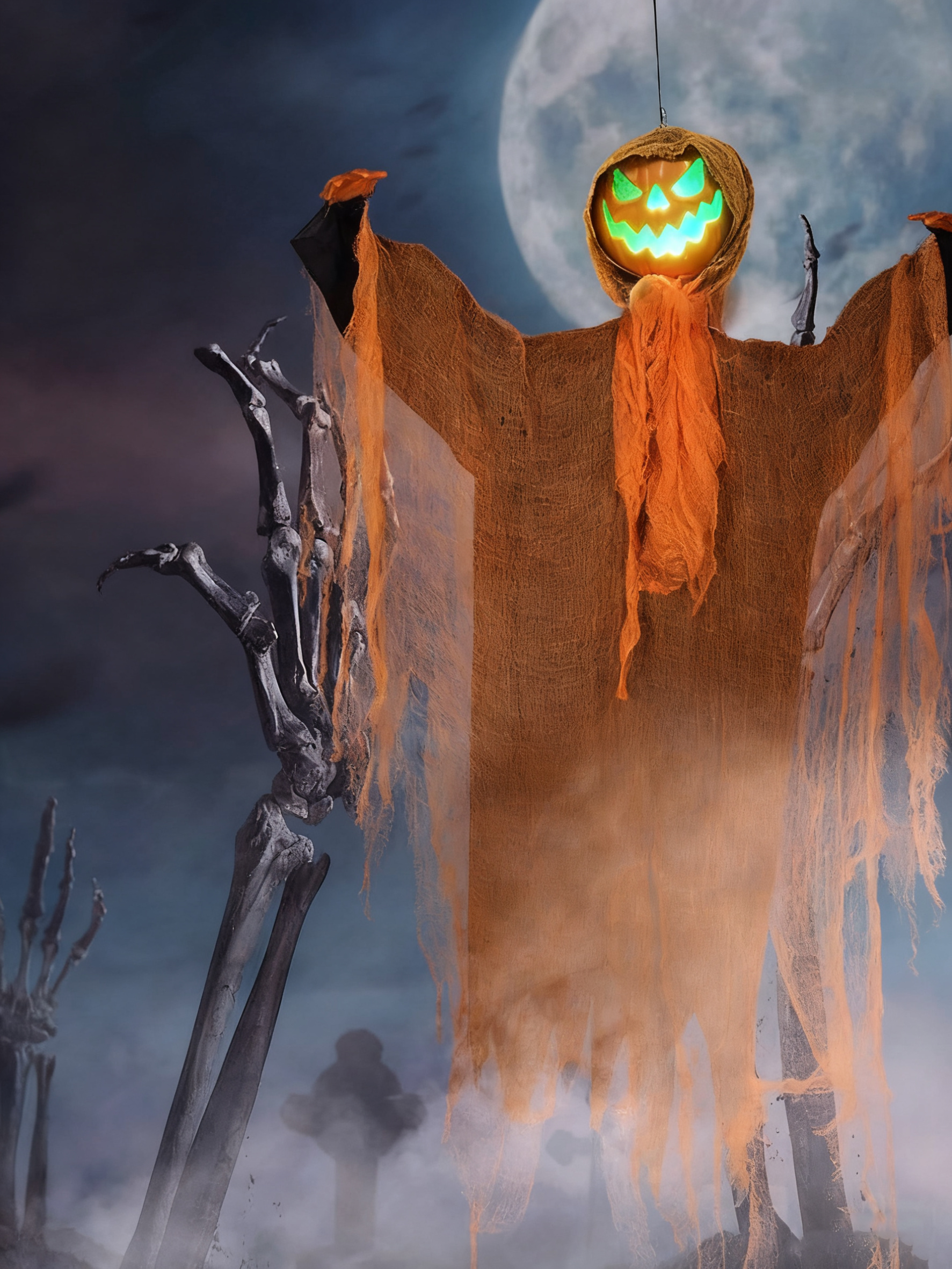 【Scary Halloween Prop】: The animated pumpkin ghost is the perfect addition to your indoor and outdoor Halloween decorations. It features a creepy pumpkin face, flowing robes, spooky sounds, and glowing eyes that will definitely scare your visitors.