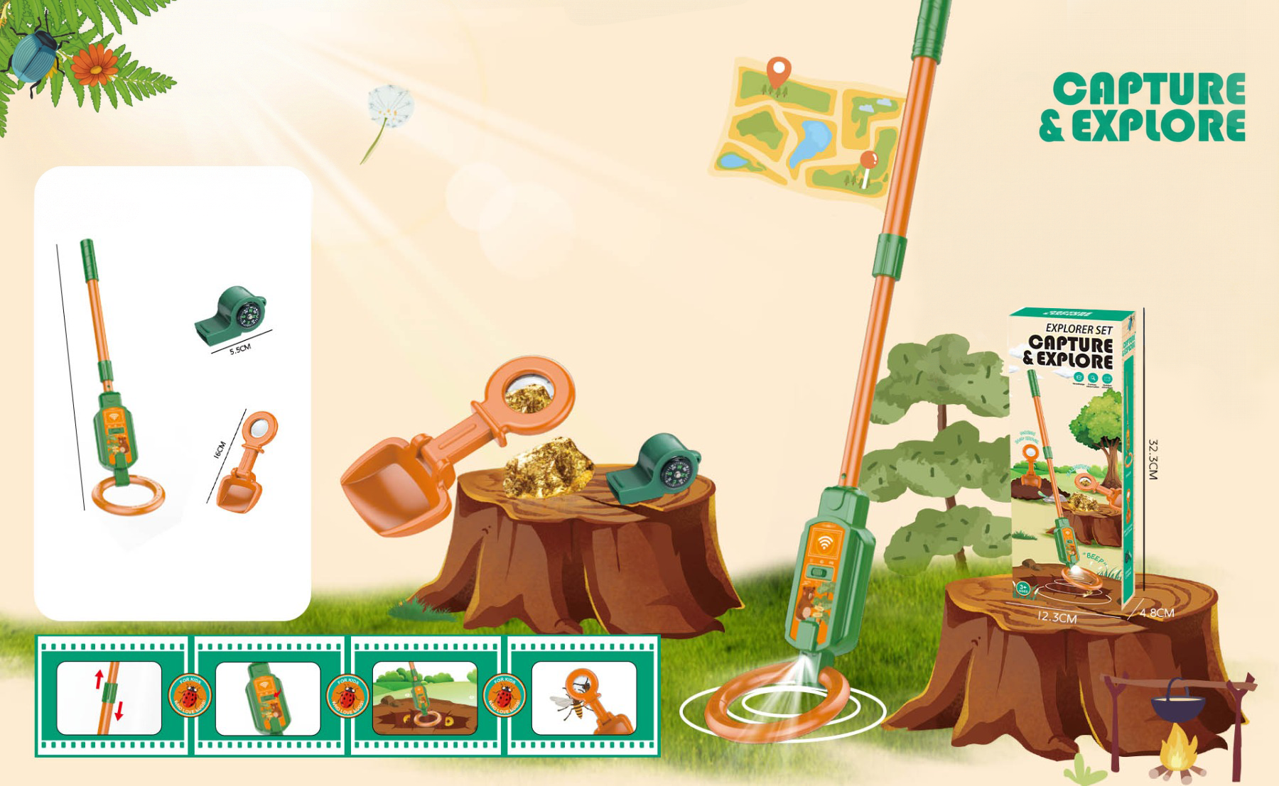 ●【All-in-One Outdoor Explorer Kit】This 3-in-1 adventure set includes a kid-friendly metal detector, a digging sand shovel, and a magnifier, empowering little explorers to hunt for hidden treasures, dig up fascinating specimens, and examine nature’s tiny wonders in one go.