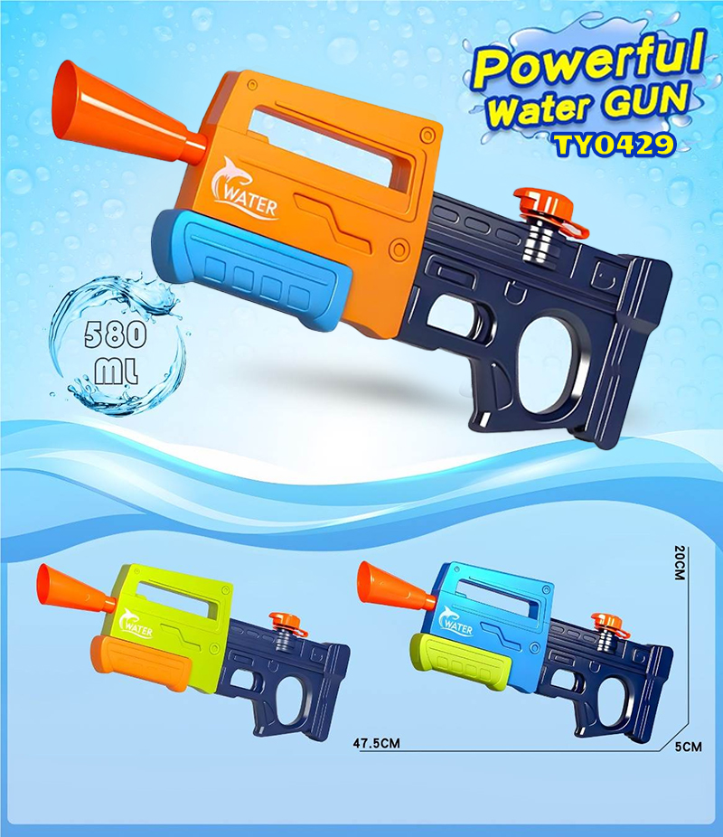【580ml Large Capacity】 Equipped with a generous 580ml water tank, this water gun allows for longer playtime with fewer refills, ensuring you stay in the action during intense backyard water battles.