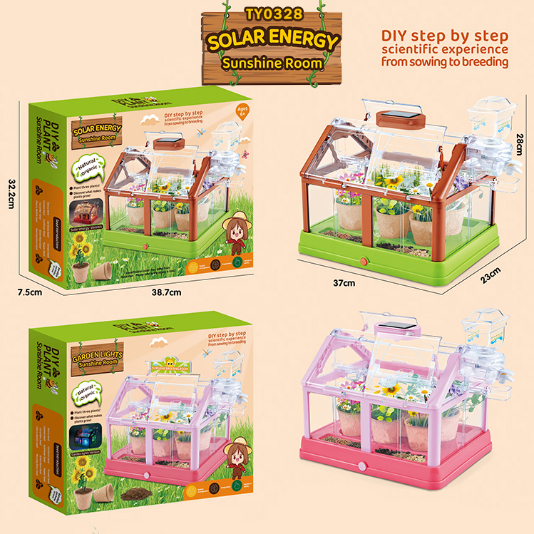 【Plant Gardening Kit with Solar Powered】This kit is equipped with a solar panel, which collects sunlight to power the LED lights inside the greenhouse, providing ample light for plant growth at night.